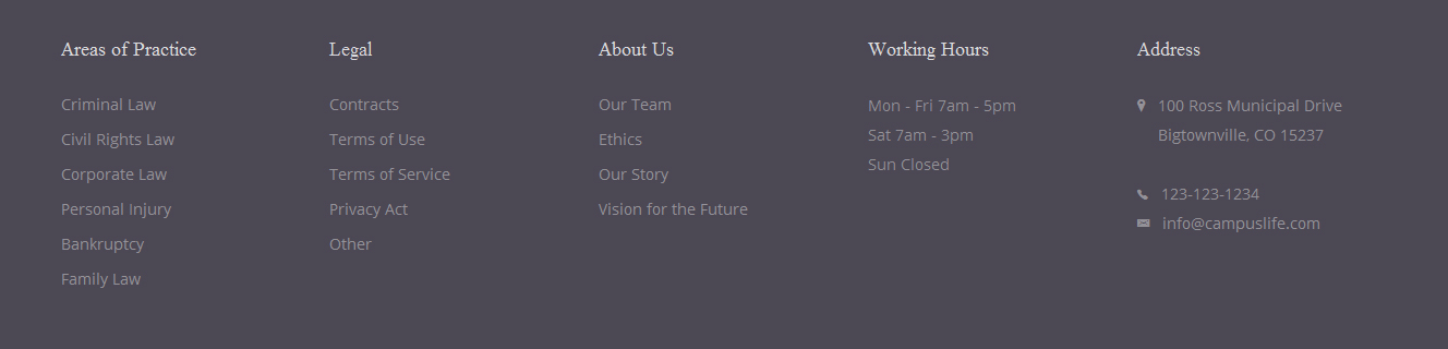 <div class="s5_address_right"><span class="address_wrap"> 100 Ross Municipal Drive <br>Bigtownville, CO 15237 <br><br> </span></div>